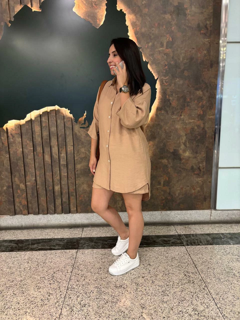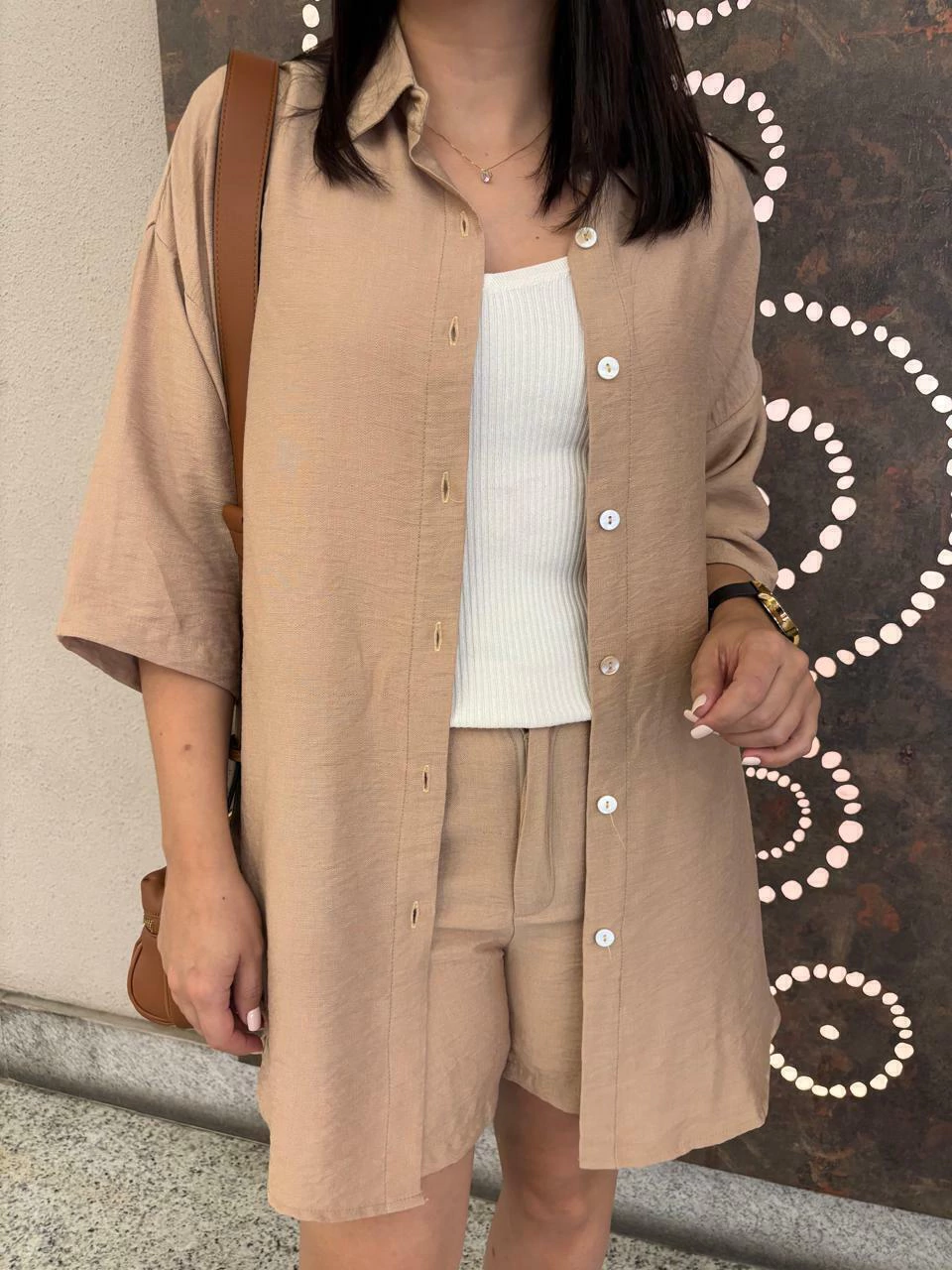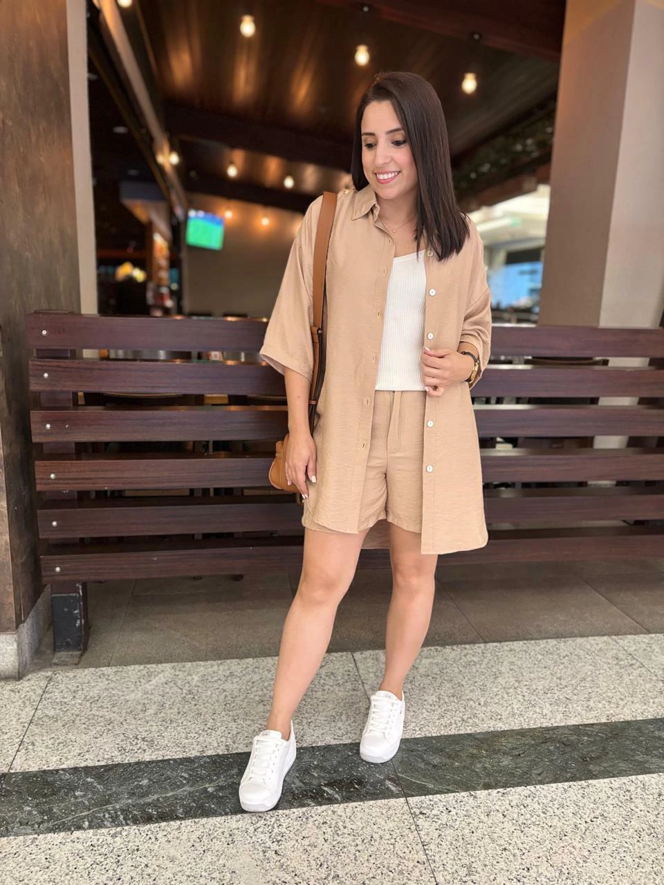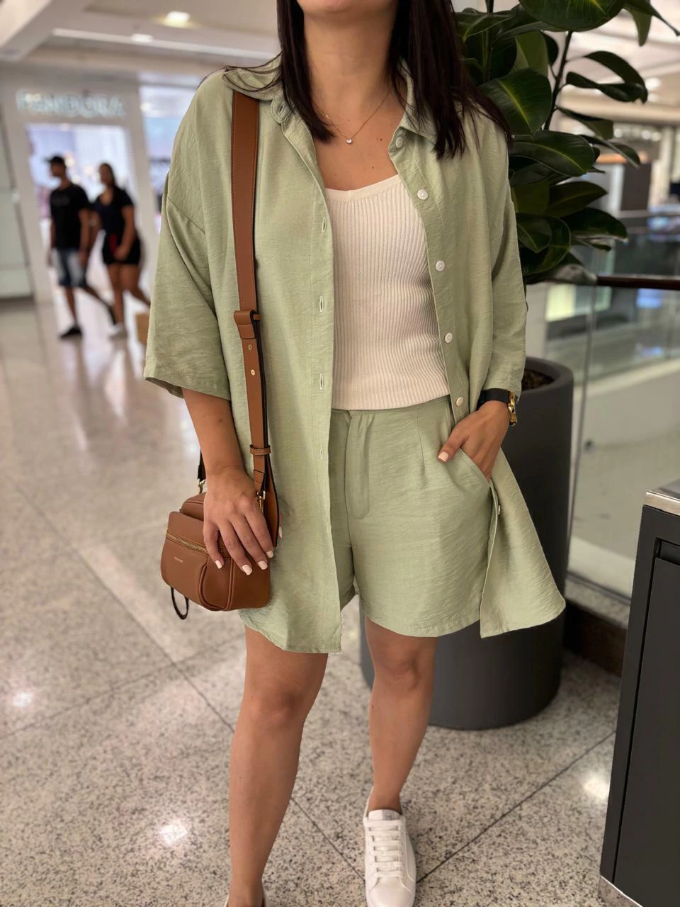 O Conjunto Arye é fabricado na viscoamida, ótimo para várias ocasiões com maior praticidade e conforto, não precisa passar a camisa com modelagem ampla e alongada é um charme a parte, O shorts tem forro, bolso e cós com botão completanto o look.