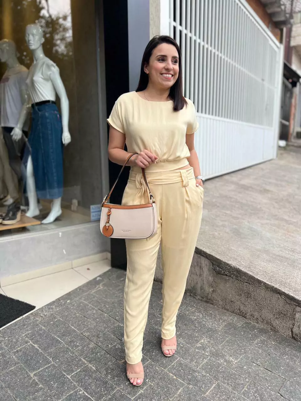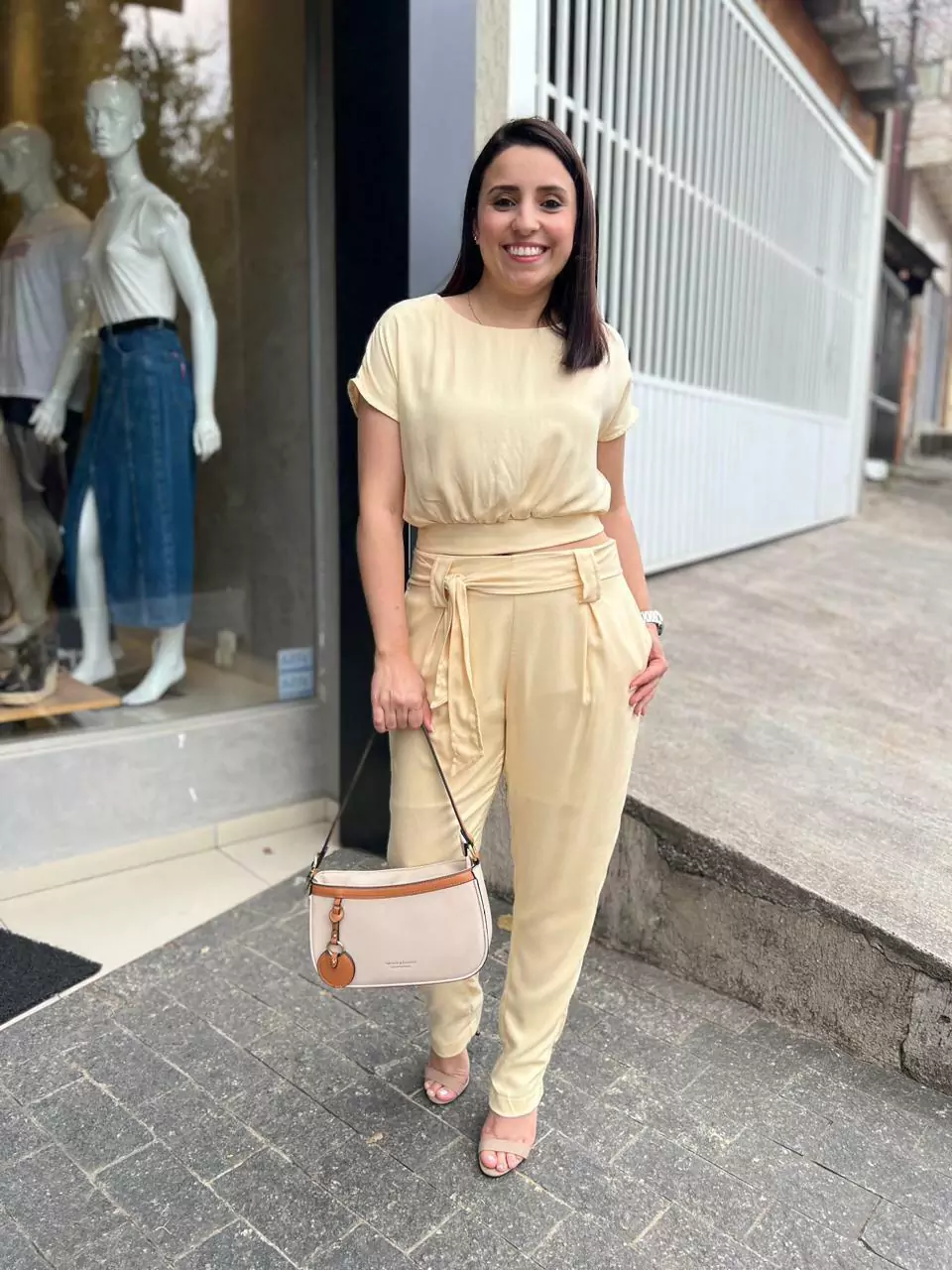 O Conjunto Mari é fabricado em viscose Delta uma viscose mais encorpada com ótimo caimento, a blusa tem comprimento de semi cropped com elastico na barra das costas, a calça com bolsos, elastico no cós das costas para melhor caimento e conforto contém faixa para dar um charme especial no look .