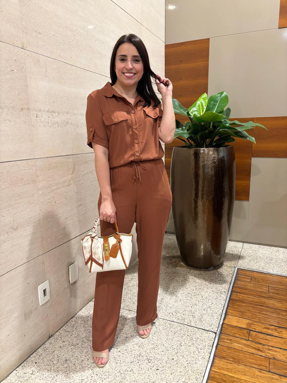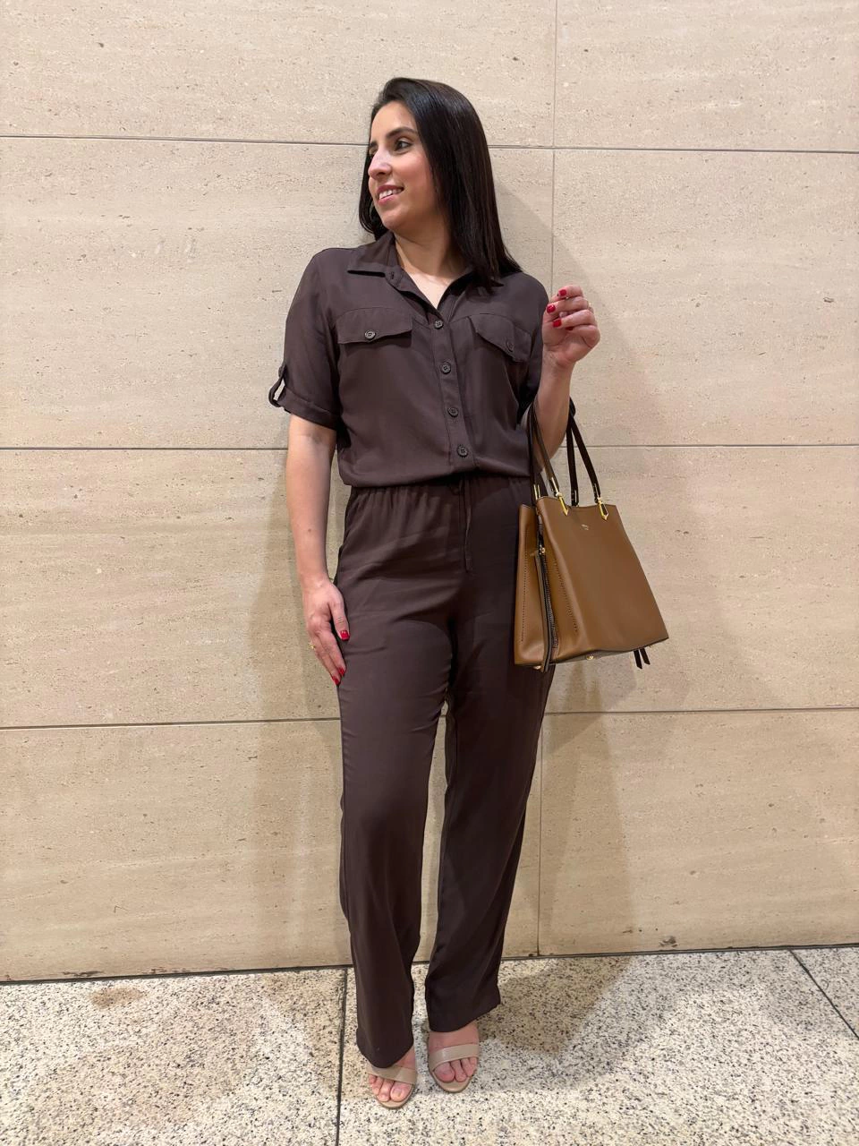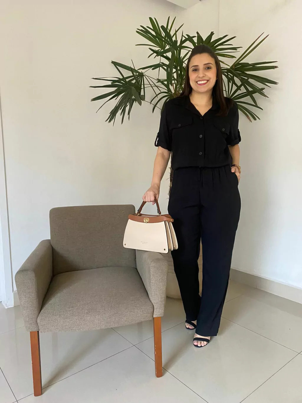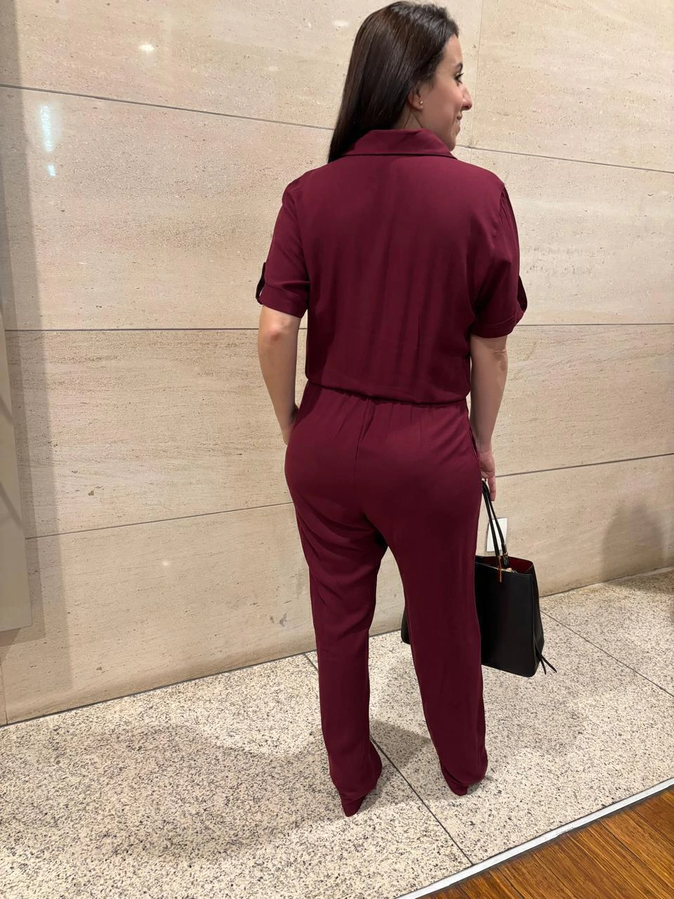 O Macacão Ivy é fabricado em viscose Delta uma viscose mais encorpada com ótimo caimento, tem manguinha e tem elástico na cintura os botões frontais facilitam para vestir .