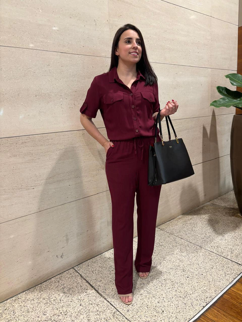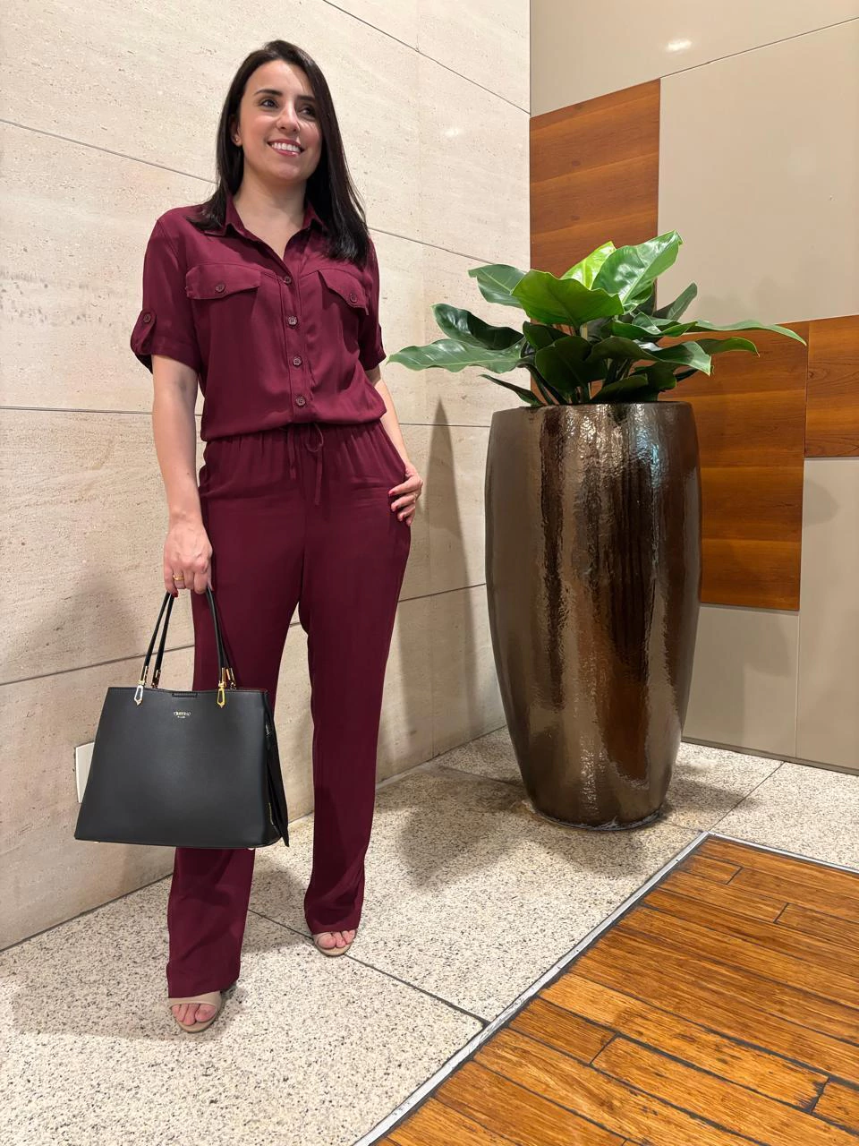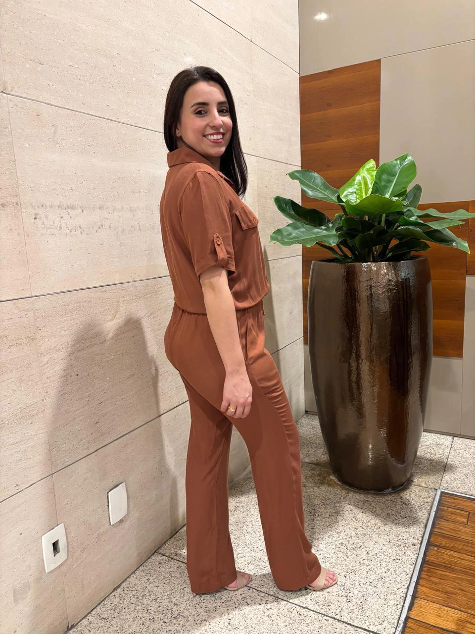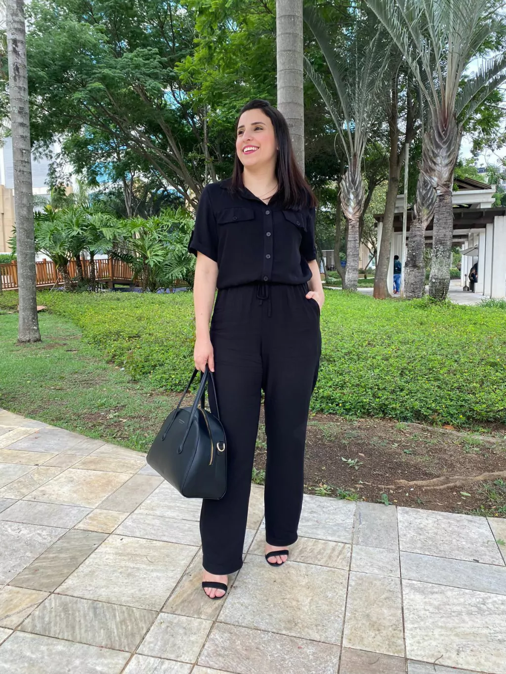 O Macacão Ivy é fabricado em viscose Delta uma viscose mais encorpada com ótimo caimento, tem manguinha e tem elástico na cintura os botões frontais facilitam para vestir .