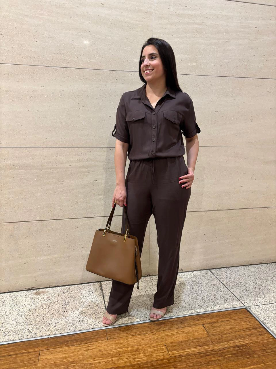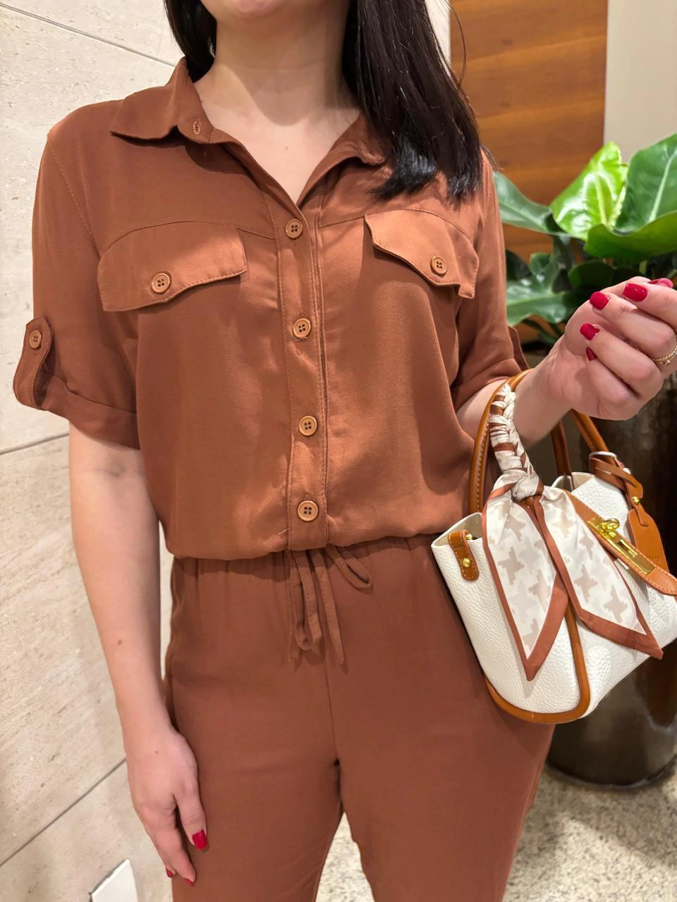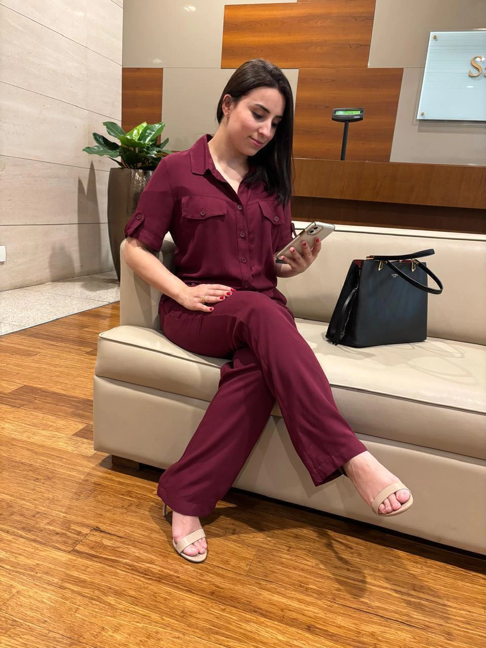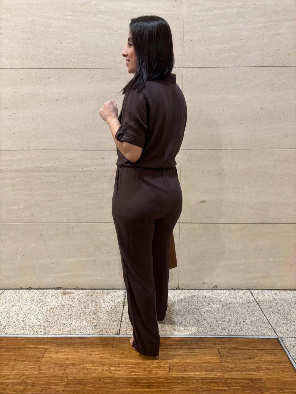 O Macacão Ivy é fabricado em viscose Delta uma viscose mais encorpada com ótimo caimento, tem manguinha e tem elástico na cintura os botões frontais facilitam para vestir .
