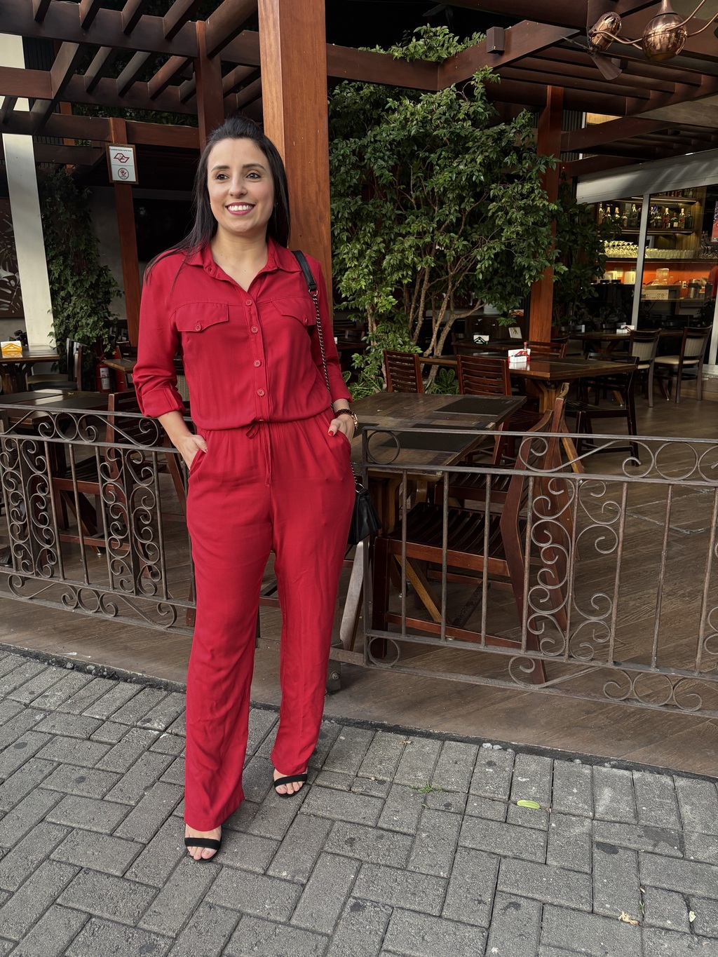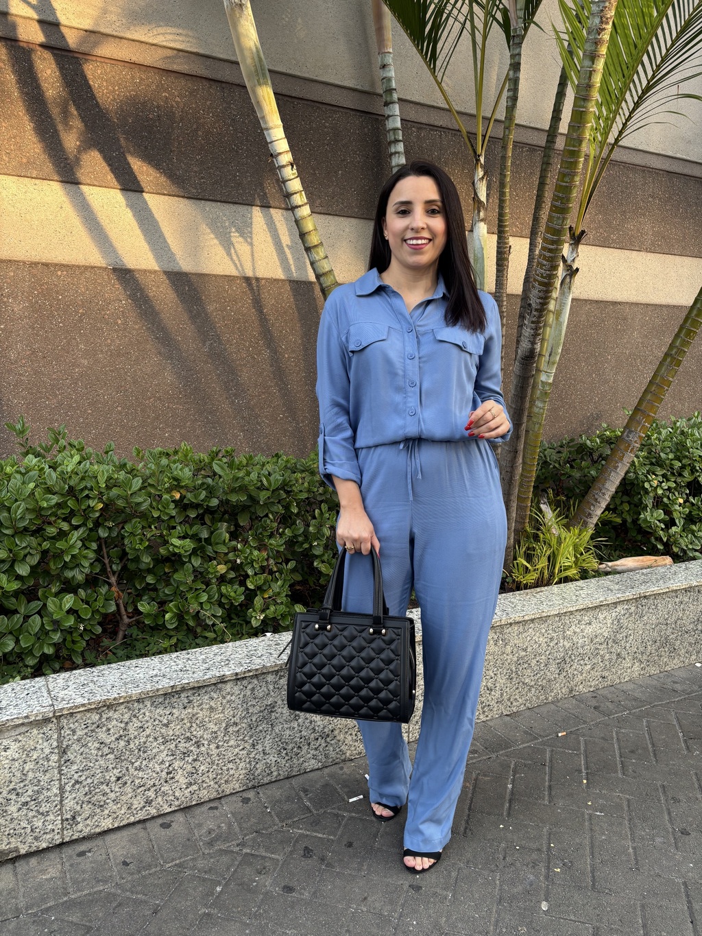 O Macacão Isabela é fabricado em viscose Delta uma viscose mais encorpada com ótimo caimento, tem bolsos ajuste nas mangas e tem elástico na cintura os botões frontais que abrem facilitam para vestir .