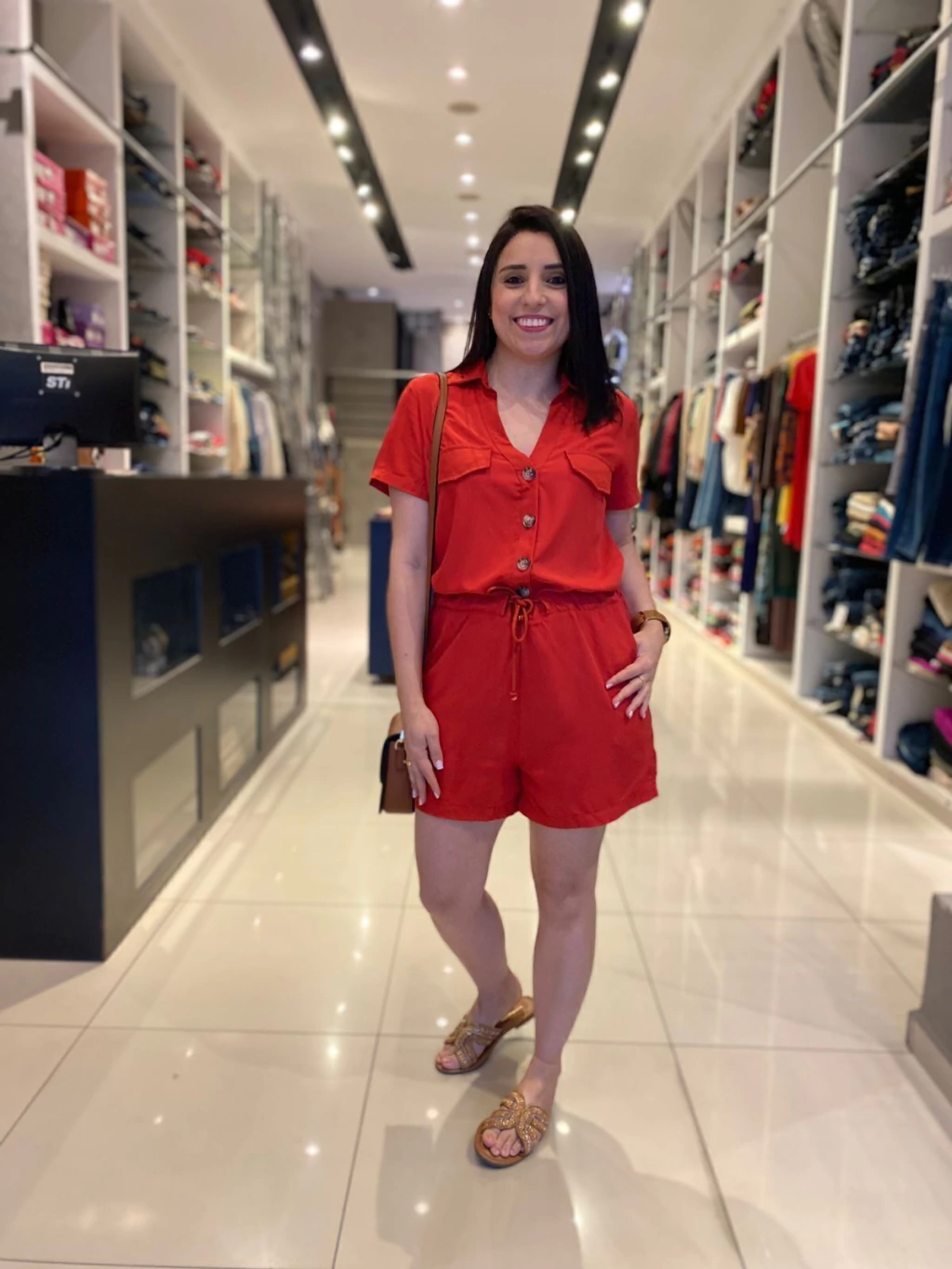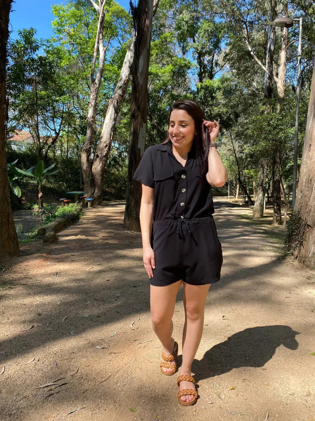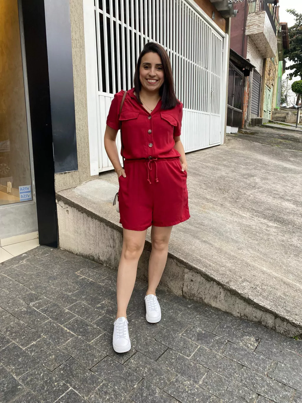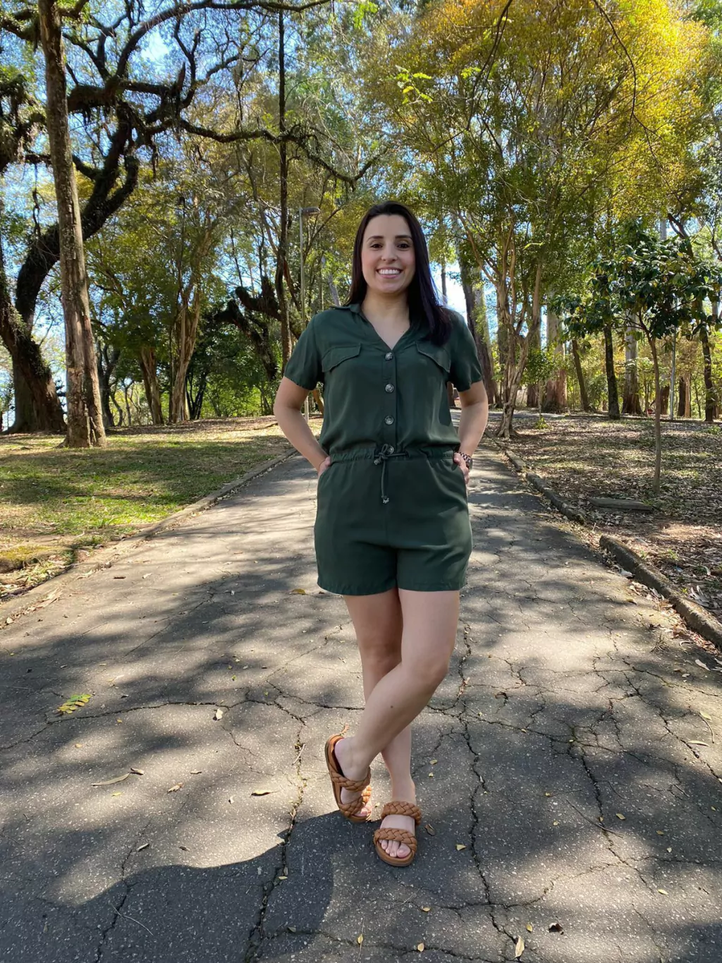 O Macaquinho Nanda é fabricado no viscose, deixando assim a peça com caimento leve contém botões na parte do busto e bolsos na parte do shorts e detalhe de amarração na cintura .
