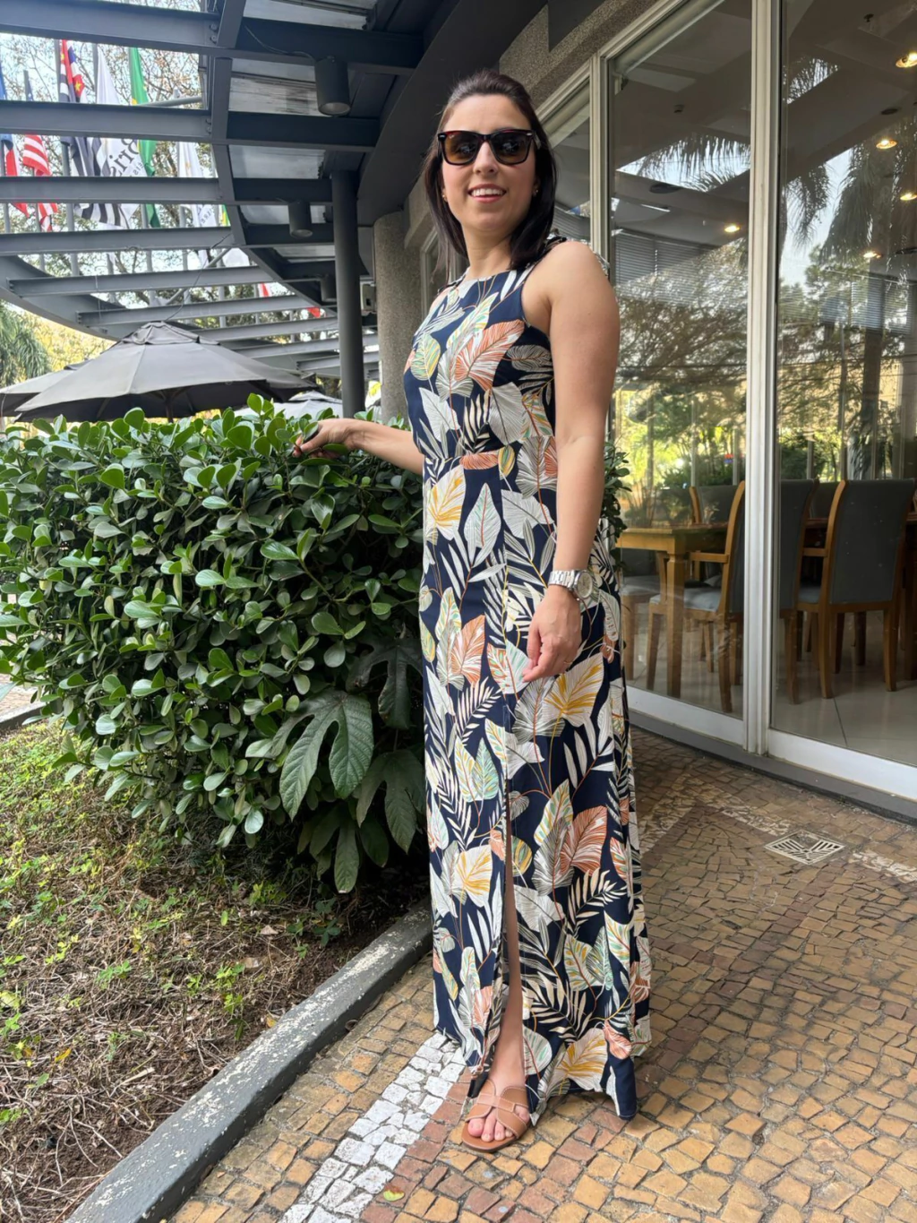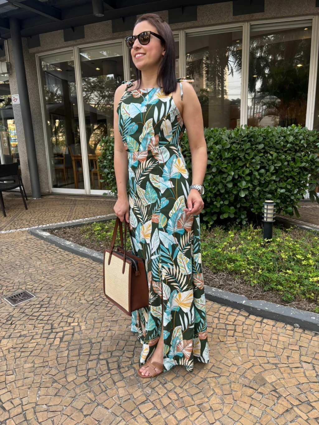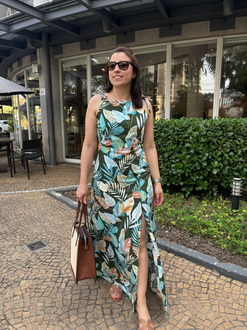 O Vestido Olivia midi e é fabricado em tecido 100% viscose com um toque macio e estampas lindas para o verão,contém regulagem nas alças que ajuda no ajuste, o detalhe de fenda na perna esquerda da um toque especial para o modelo .